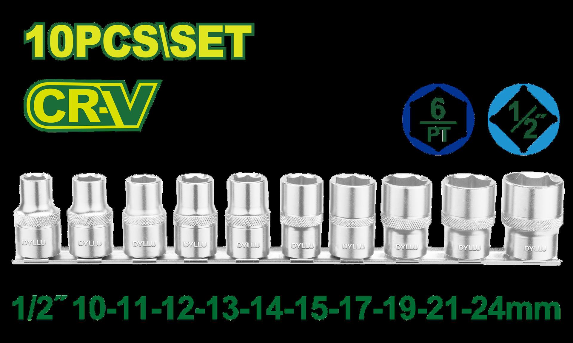 JUEGO DE COPAS 1/2" X 10 PZS DYLLU (DTST2410)