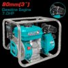 MOTOBOMBA A GASOLINA 7.0HP, SALIDA 80MM(3″) FLUJO MAX 1000L/MIN, MAXIMO ELEVACION 32M , MAXIMO DE SUCCION 8M, DESPLAZAMIENTO 208CC CAPACIDAD TANQUE 3.6L INDUSTRIAL SUPER TOTAL (TP3302)