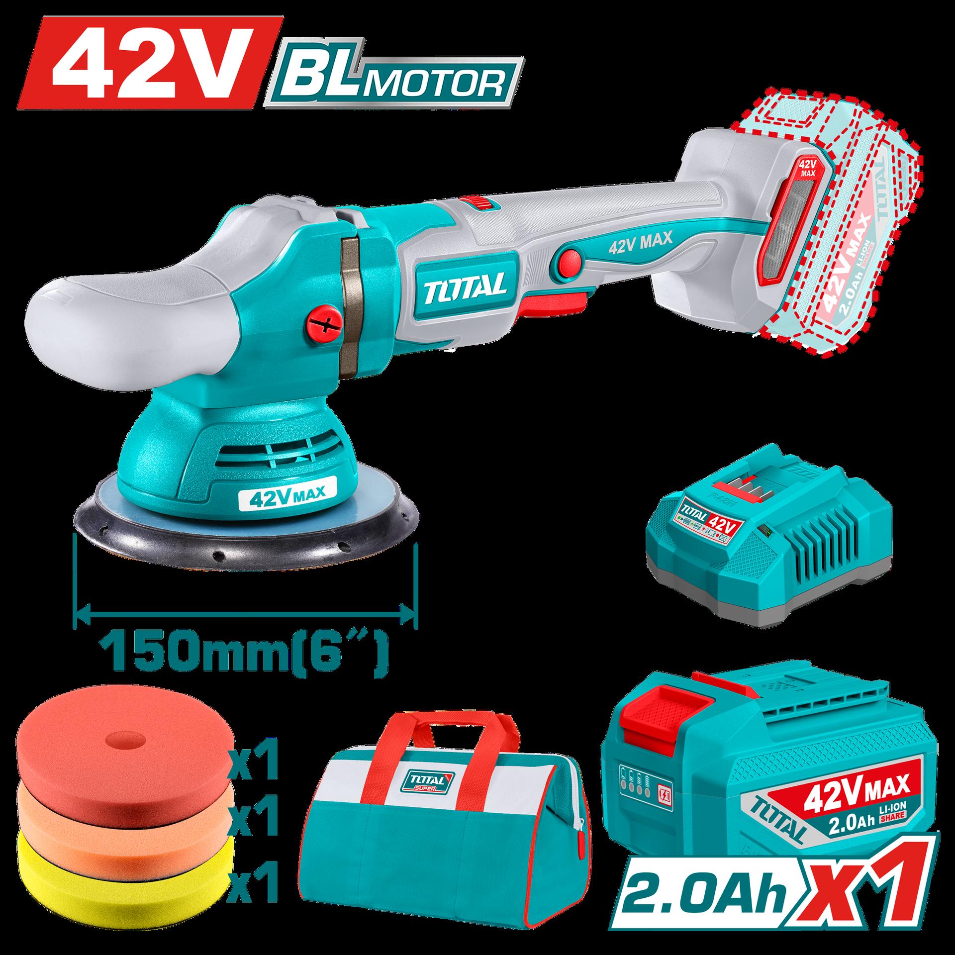 POLICHADORA INALAMBRICA 8" 42V INCLUYE 1 BATERIA 2.0AH, 1 CARGADOR Y ACCESORIOS INDUSTRIAL SUPER TOTAL (UTAPLI42151)
